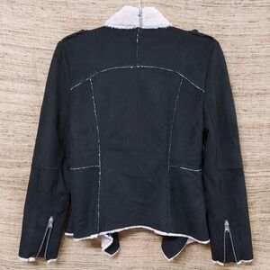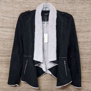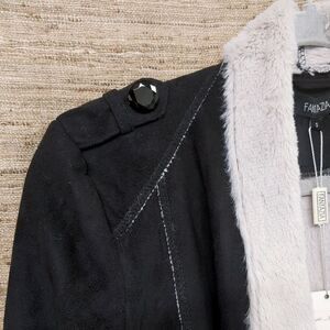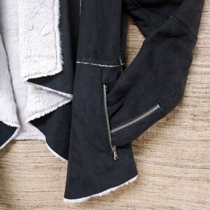 Fantazia Black And Oatmeal Faux Suede Open Sherling Jacket Womens Small 2740 NWT