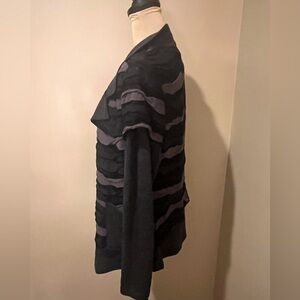 Fantazia Gray and Black Striped Open Front Cardigan, size Medium