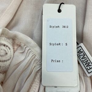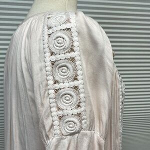 NWT Fantazia Blush Pink Embroidered Lace Up 3/4 Sleeve Blouse
