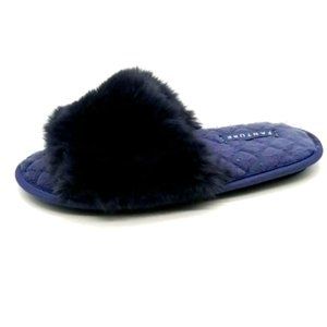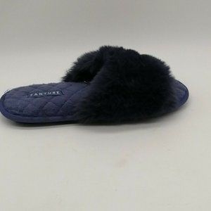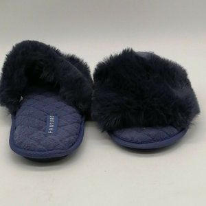Fanture Womens Slide Slipper Blue Faux Fur Cushioned Quilted Insole 7-8