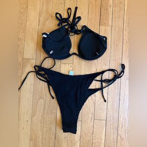 Dive into style with this elegant black bikini set. Perfect for a chic beach look.