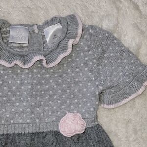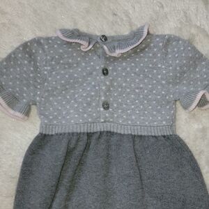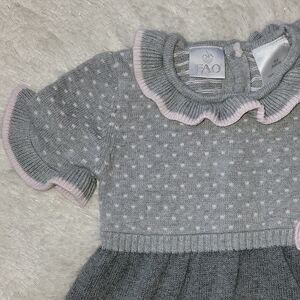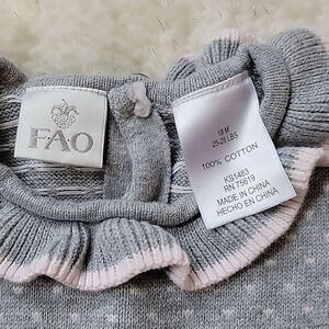 Fao SCHWARZ GRAY & PINK POLKA DOT SHORT-SLEEVE RUFFLED SWEATER DRESS, SZ 18 MOS.