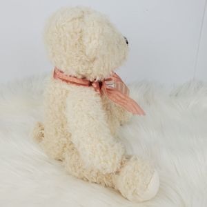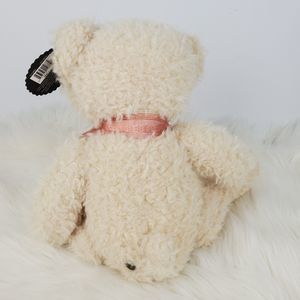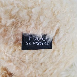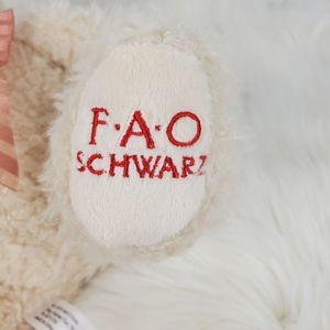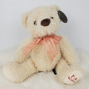 Fao Schwarz Cream Fuzzy Peach Striped Bow Teddy Bear Plush 9.5" NWT