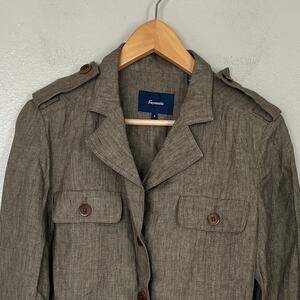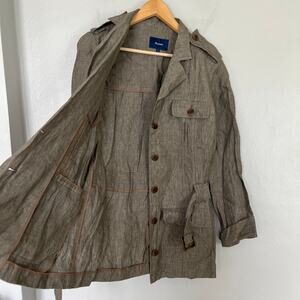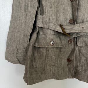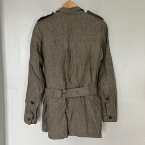 Façonnable 100% Linen Safari Jacket Women's Size 6 Tan Brown Belted Button Front