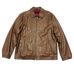 Façonnable Leather Jacket Men's Size XL Brown Quilted Lined Long Sleeve Full Zip