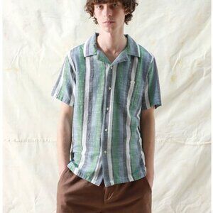 Far Afield Navy/ Green Stripe Selleck Shirt -NWT