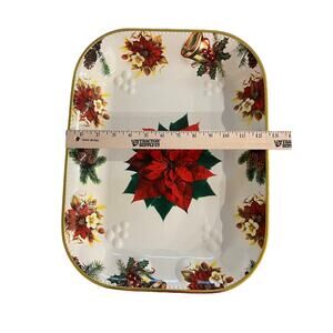 Far East Brokers Holiday Platter Poinsettias, Bells, & Holly Rectangle 16 x 12