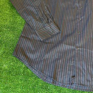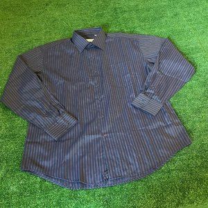Far East Men's Button Down Long Sleeve Classic Fit Stripes Black Shirt Size 17