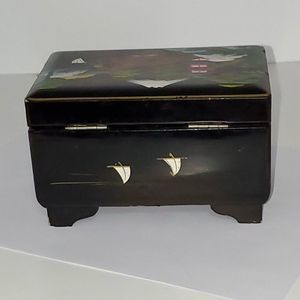 Far East Oriental Musical Jewelry Box Hand Painted Laquered Wood Vintage As-Is