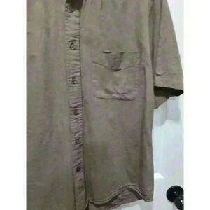 This Farah shirt is a great addition to any wardrobe. The short-sleeved, button-up design is perfect for a casual day out. The olive green color and solid pattern add a touch of style to the shirt. Made from breathable cotton material, this shirt is easy to care for and machine washable. It also features a collared neckline, accents of buttons, and pockets for added convenience. The shirt is available in size M, with a chest size of 44 inches. This Farah shirt is perfect for men who want a comfortable and stylish option for their wardrobe.