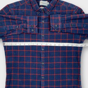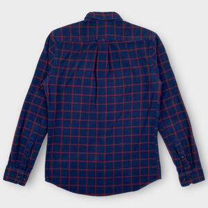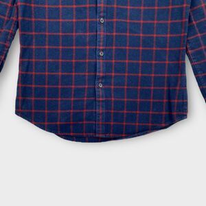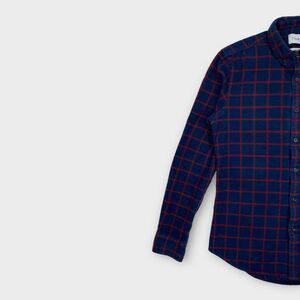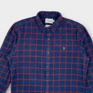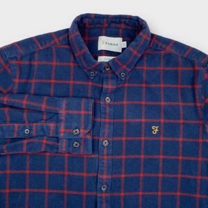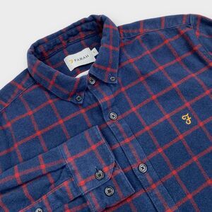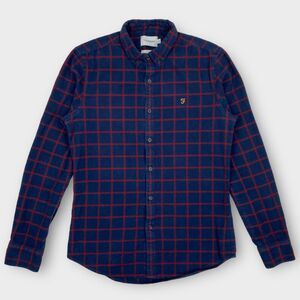 Farah Shirt Mens Small Slim Fit Flannel Windowpane Check Navy Logo Button Down