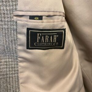 Farah Tweed Blazer Sport Jacket Coat Mens 42R Gray Window Pane Wool Blend