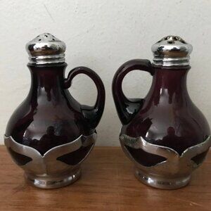 Farber Bros NY Cambridge Glass Amethyst Purple Chrome Salt Pepper Shakers Set