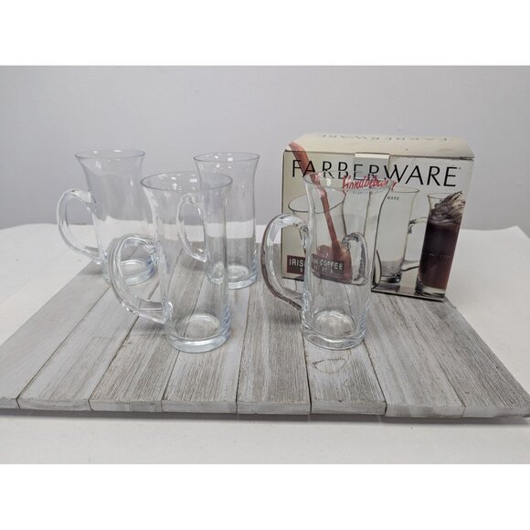 Farberware Set Of 4 Irish Coffee Hot Cold Clear Footed Mugs 5 1/4"