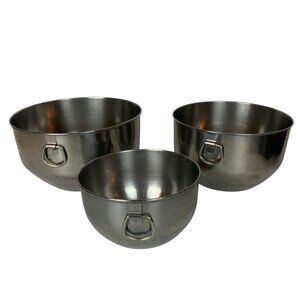 A couple of the bowls have faint dents (please see photos). Good condition overall. Clean and ready to use.