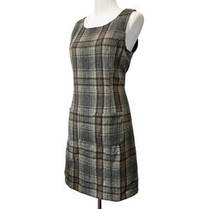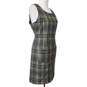 Fargo Clothing Supply Dress Wool Blend Plaid Pencil Sleeveless Green Brown Sz L
