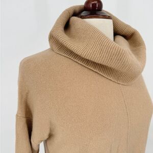 Farhi By Nicole Farhi Camel Merino Wool Cashmere Blend Cowl Turtleneck Tunic. Made with Italian yarn. Made in Italy.