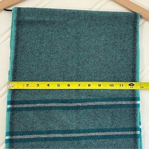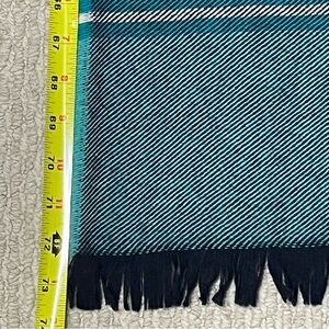 Add a touch of elegance to your outdoor wardrobe with this teal, navy & white 100% wool unisex scarf from Faribault Woolen Mill Co. Perfect for any occasion, this accessory combines style and warmth effortlessly. See last 2 pics for small flaws.