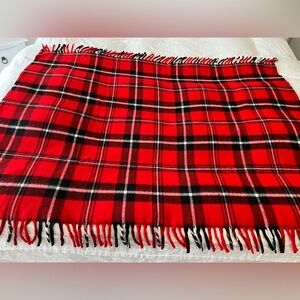 Faribo | Acrylic Fringed | Red Black Tartan Plaid Travel Lap Blanket