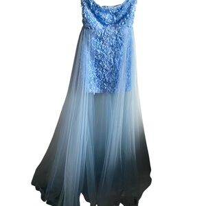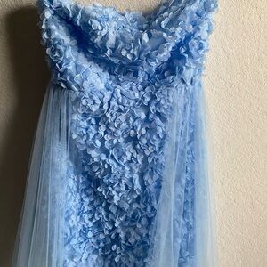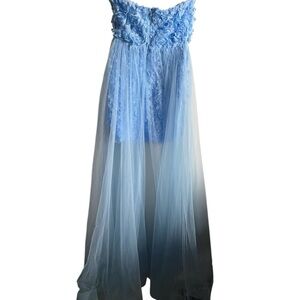 Fariesty 3D Flower Appliqué Blue Tube Dress Mesh OverLay On Waist Prom Wedding S