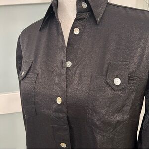 Farinaz Taghavi Adventurer Tunic Blouse SZ 4 Black Roll Tab Sleeves Shiny Is New With Tags.