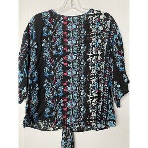 Farktop Women's Floral Blouse V Neck Tie Chiffon Shirt Size M Black Boho tie waist pull on flutter sleeves see pictures for more details and accurate measurements