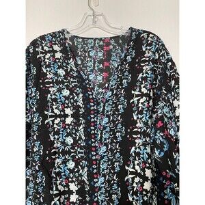 Farktop Women's Floral Blouse V Neck Tie Chiffon Shirt Size M Black Boho