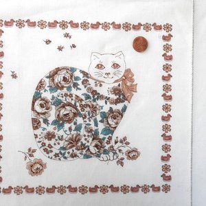 Vintage cotton block print quilt fabric with farm animals, floral patchwork design. The piece is 45" X 21.5" and consists of 8 squares 10.5" X 10.5" each. The animals on the fabric are: dog, sheep (2), pig, cat, duck (2), and rooster. The colors are off-white, brown, and teal. The fabric is not pre-washed, in excellent condition, without stains, smells, or other damages. It was not pre-washed. It is great for making a modern farmhouse decor: napkins, quilts, artwork, etc.