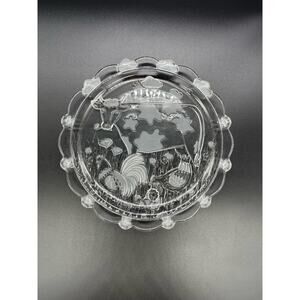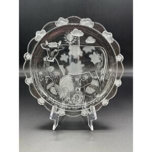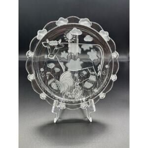 Farm Cow Chicken Rooster Etched Glass Plate 9"