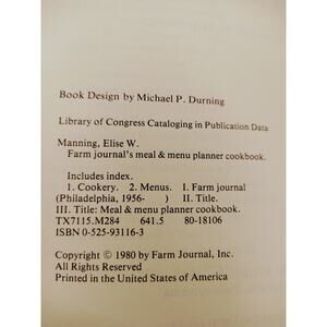 Farm Journal's Meal and Menu Planner Cookbook - Vtg 1980 Hardcover Elise Manning