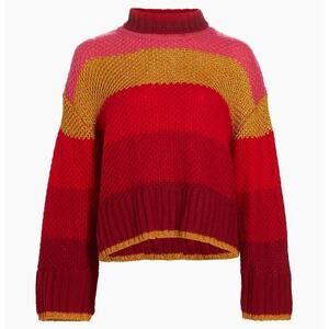 Farm Plantage Rio Stripes Sweater Knitted Mock Neck Oversized Size XS NWOT
