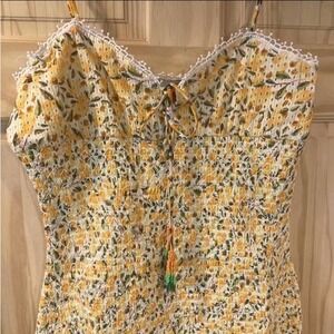 Farm RIO YELLOW AND WHITE CASHEW BODYCON MIDI DRESS- SIZE LARGE- NWT