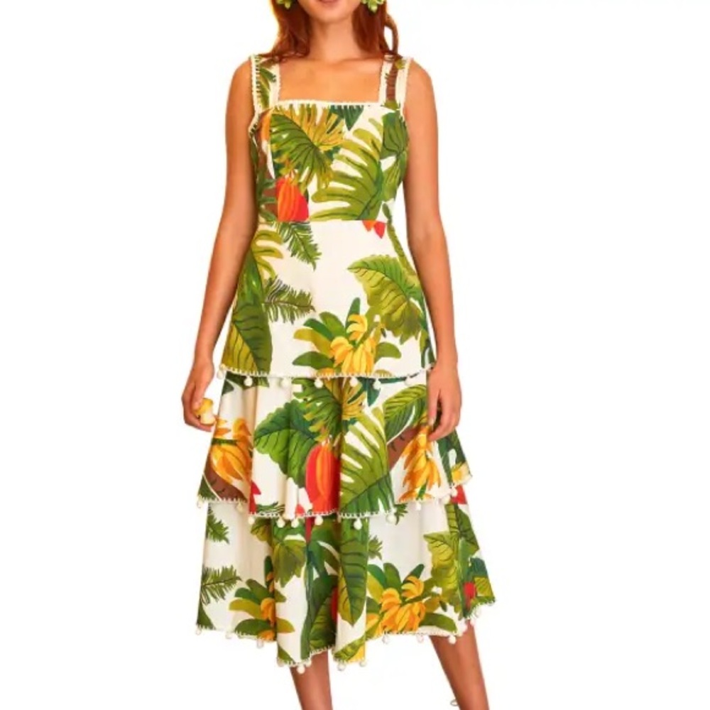 Brand new with tags attached Farm Rio white cocoa forest midi dress