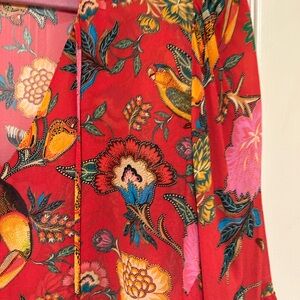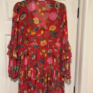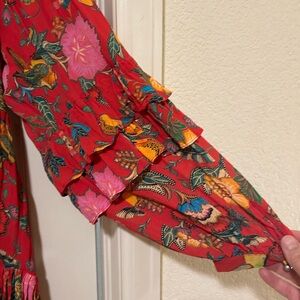 Vibrant floral dress with ruffle sleeves. Perfect for any occasion. Eye-catching design. Vibrant colors..missing slip .