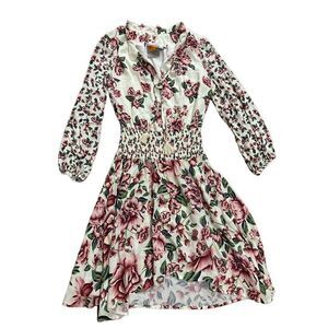 Farm Rio Anabela White Floral Smocked Ruched Waist Long Sleeve Dress XXS