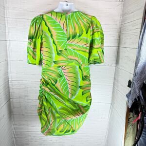 Farm Rio Anthro Large lime green floral tropical dress resort vacation fall