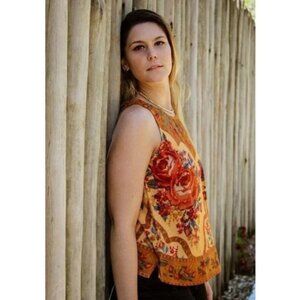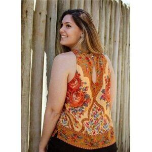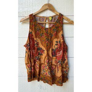 Farm Rio Anthropologie Cross Stitch Floral Tank Top Sleeveless S