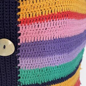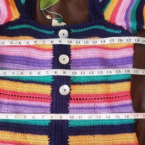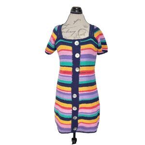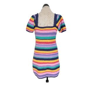 Anthropologie Farm Rio Renata Sweater Dress Knit Crochet Striped Rainbow Mini Sz XS Bohemian Southwestern Boho
