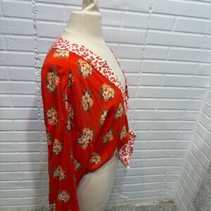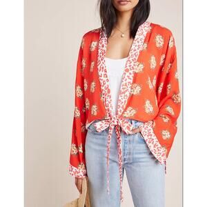 Farm Rio Anthropologie Kimono Open Front Coral Floral Animal Print One Size Fall
