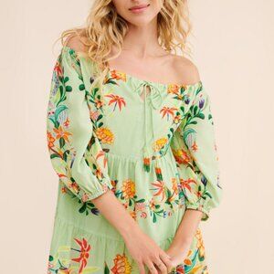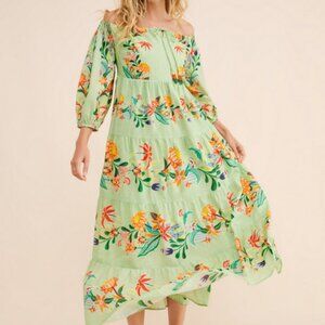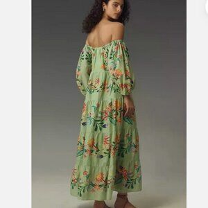Farm Rio Anthropologie L NWT Off-The-Shoulder Tiered Floral Midi Dress Large