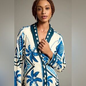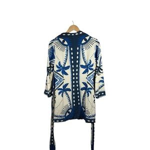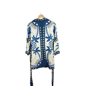 Farm Rio Anthropologie Long-Sleeve Blazer Mini Dress in Ivory/Blue Size SP