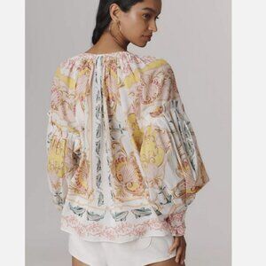 Farm Rio Anthropologie Maritime Magic Long-Sleeve Peasant Blouse Top XS NWT