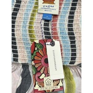 Farm Rio Anthropologie Maxi Dress Ruffle Blue Stripe Cotton Preppy Boho Sz M NWT