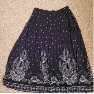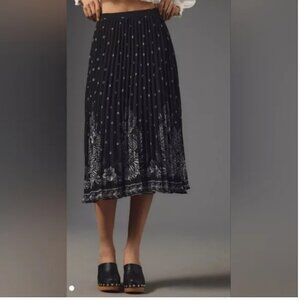 Farm Rio Anthropologie Midi Skirt Pleated Black white size XS