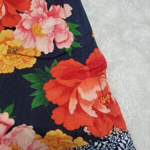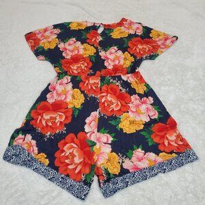 Farm Rio Anthropologie Navy Blue Red Yellow Floral V Neck Shorts Romper Small