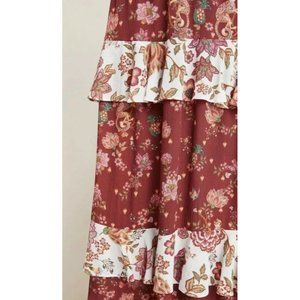 Farm Rio by Anthropologie Portia Red Floral Tiered Maxi Skirt In a Size Large. Condition is New with tags. Sold out!