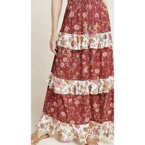 Farm Rio Anthropologie Portia Red Floral Tiered Maxi Skirt Large L New NWT RARE