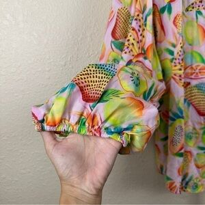 Farm Rio Anthropologie Rainforest Wrap Tropical Fruit Print Top Size Medium