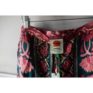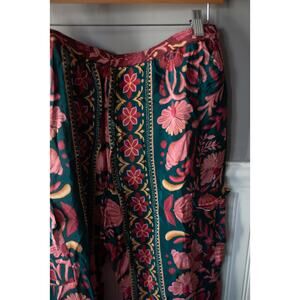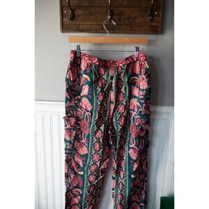 Farm Rio Anthropologie Teal Seashell Tapestry Cargo Pants Large