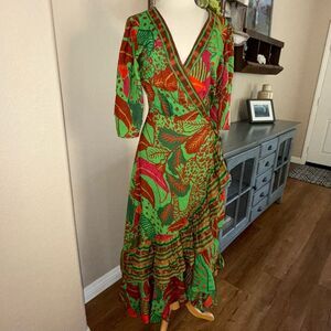 Farm Rio Anthropologie Womens Tropical Flutter Sleeve Wrap Maxi Dress Small